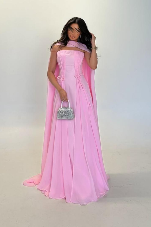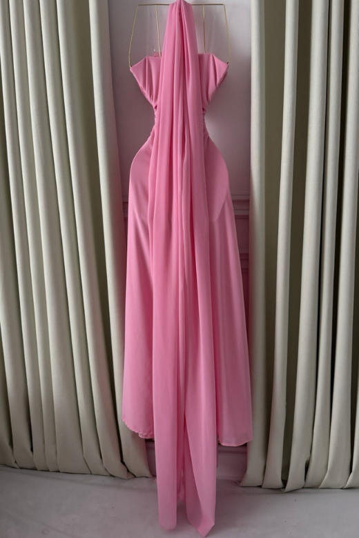 فستان سهرة وردي ناعم بطبقات من الكشكشة - موديل همس الربيع